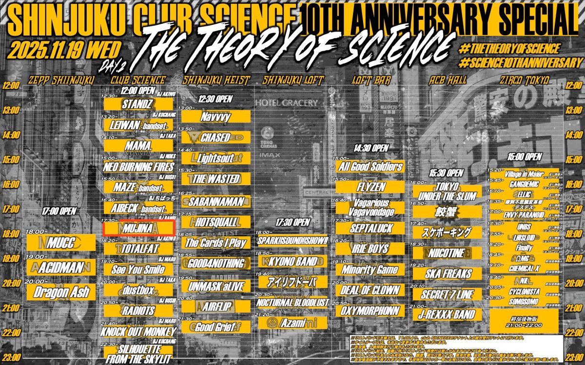 【新宿CLUB SCIENCE 他】 ”The Theory of SCIENCE" ~Shinjuku club SCIENCE 10th Anniversary ~